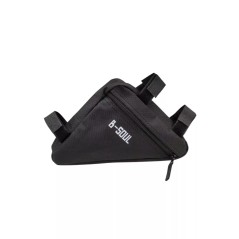 Es un bolso triangular para el cuadro de bicicleta de la marca B-Soul, de color negro